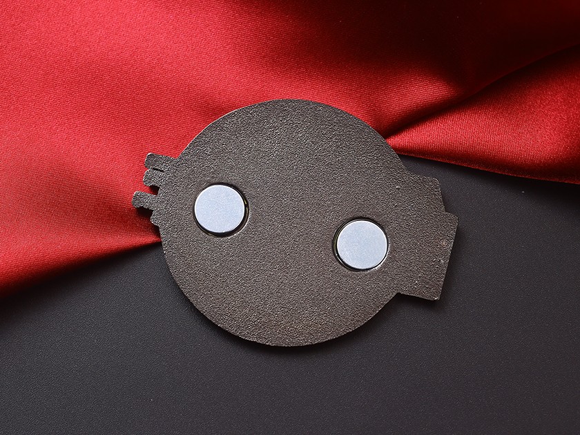 【制作工艺】:冲压 【上色工艺】:烤漆 【电镀颜色】:黑镍 【背面工艺】:砂底 【产品配件】:磁铁扣