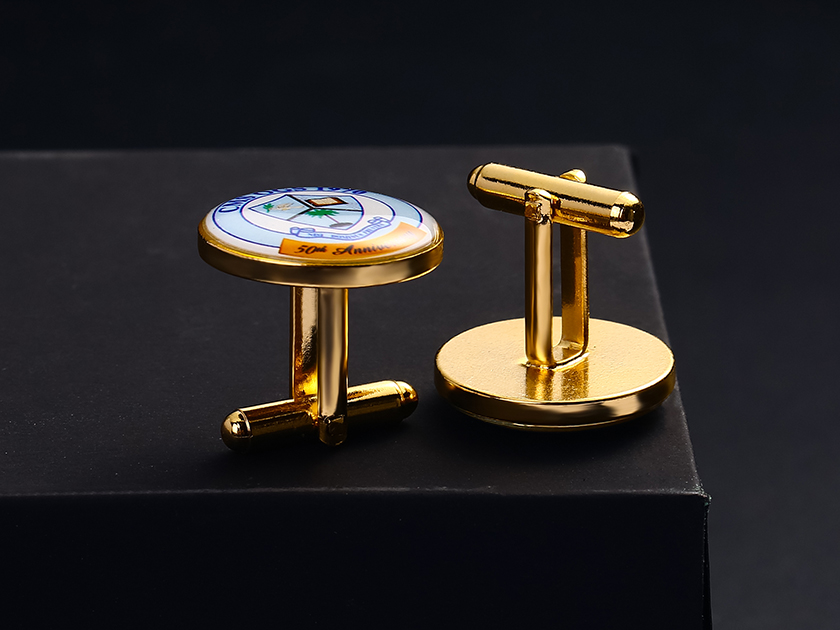 【制作工艺】:冲压 【上色工艺】:印刷滴胶 【电镀颜色】:金色 【背面工艺】:亮面 【产品配件】:袖扣脚