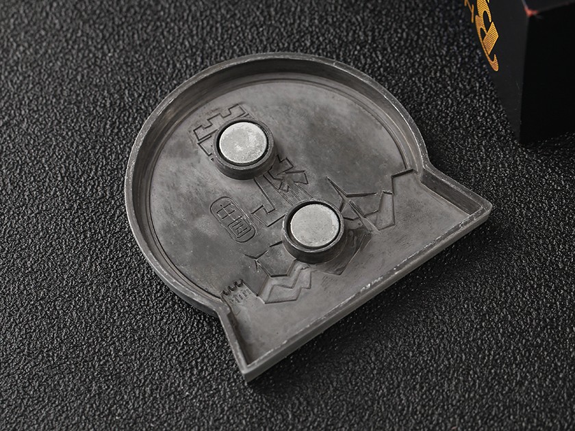 【制作工艺】:压铸 【上色工艺】:烤漆+金属本色 【电镀颜色】:枪黑拉丝 【背面工艺】:本色凹凸 【产品配件】:磁铁扣