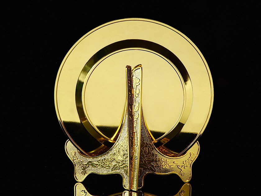 【制作工艺】:压铸 【上色工艺】:烤漆 【电镀颜色】:金色 【背面工艺】:亮面 【产品配件】:金属支架