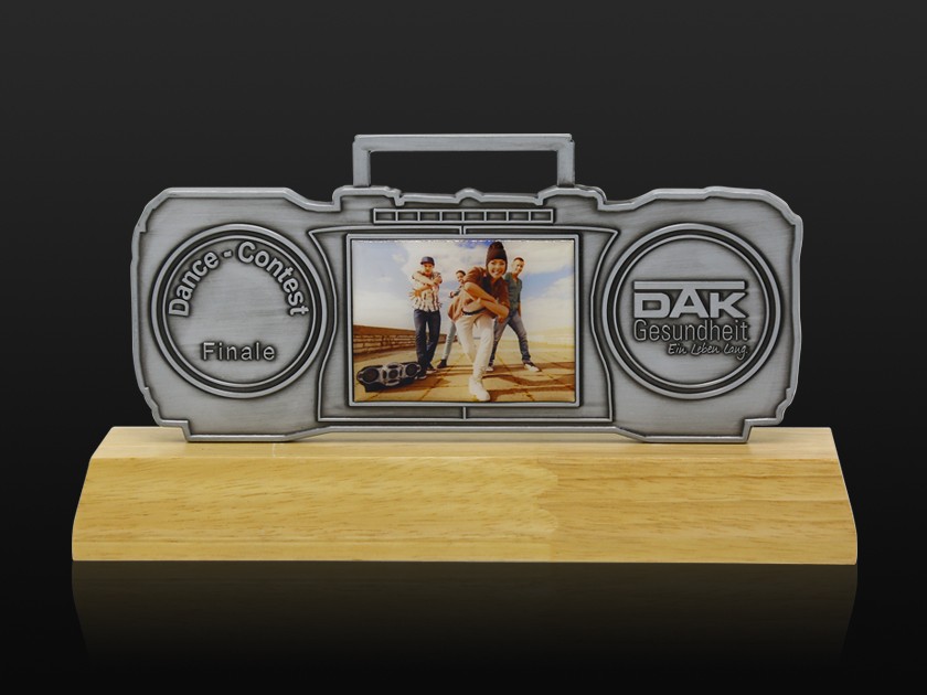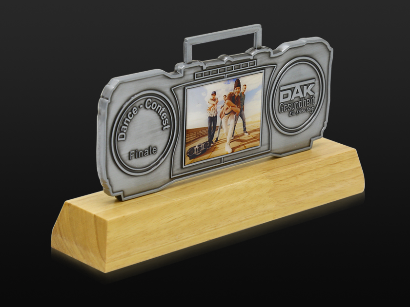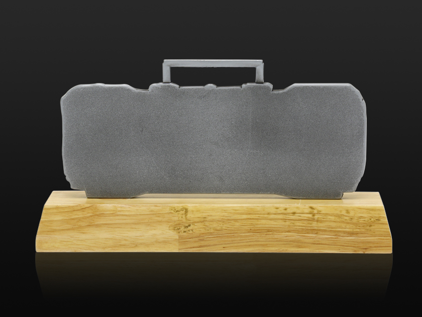 【制作工艺】:压铸 【上色工艺】:金属本色 【电镀颜色】:枪黑拉丝 【背面工艺】:砂底 【产品配件】:木底座